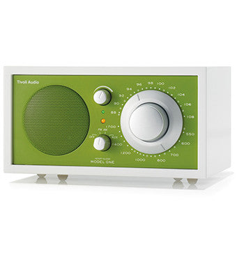 The Frost White Collection Model One AM/FM table radio features a pure white hand-lacquered cabinet, silver knobs, and a vibrantly colored faceplate. The Tivoli Audio® Model One® AM/FM table radio has been described as “the best sounding table radio ever made,” (MSNBC) offering “the kind of room-filling sound that many other radios claim to deliver but often don’t.” (Forbes) With a tuner that brings clarity to many of the weakest stations, the Model One radio begins with a handmade wood cabinet that is both beautiful and the ideal acoustically inert speaker housing. A heavy-magnet, long-throw driver is mated to a frequency contouring circuit that automatically adjusts output over half-octave increments, resulting in musically accurate tonal balance and bass response. “When your stereophile loved ones turn the knob on the rock-solid Henry Kloss Model One Table Radio, they’ll toss out all their multiuse, Bluetooth-enabled gadgets and cry with hi-fi joy.” (Elle) Like all Tivoli Audio® products, the Frost White Collection Model One AM/FM table radio is compatible with iPod and other players. Available in four bright finishes to match any decor. An external FM antenna and 9' power cord are included. One year warranty. Offered in Frost White/Atlantic Blue, Frost White/Kelly Green, Frost White/Ember Red, Frost White/Sunflower Yellow, and Frost White/Snow White. The Model One is also available in a variety of wood finishes and colors for $149.99. And the Platinum Series which features a multi-layered, high-gloss, hand-lacquered wood cabinet.