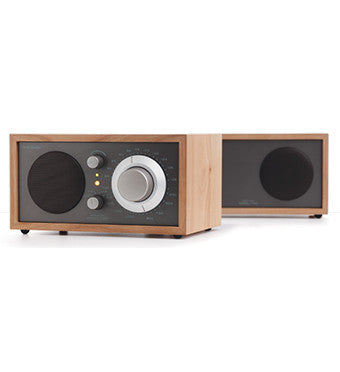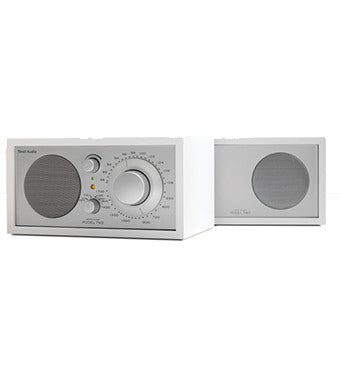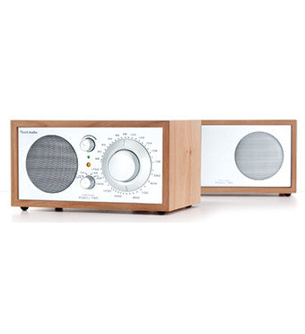 No other stereo system combines the beauty, simplicity, and audio brilliance of the Tivoli Audio® Model Two® stereo radio. "The Model Two is outstanding. Its sound is natural and free of distortion. The Tivoli Audio Model Two is perhaps today’s best bargain in small-scale audio." (Audiophile Voice) The Model Two stereo offers all the features of Tivoli Audio’s benchmark Model One radio – including its unmatched tuner, audio contouring circuits, and delightful analog tuning dial – with the addition of a second speaker cabinet for true stereo separation. “The way the music enveloped me left me with a foolish grin on my face. I couldn’t believe such beautiful sound was coming from such small sources.” (PC Review) As with all Tivoli Audio products, the Model Two stereo radio is compatible with iPod and other players. Discover the pleasure of owning – or giving – the quintessential stereo radio. An external FM antenna and external AC power supply are included. One year warranty. Offered in Cherry/Metallic Taupe, Black Ash/Silver, Cherry/Silver, and Walnut/Beige.